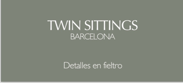 Twin Sittings es un proyecto, forjado en Barcelona en el año 2005, que surge un poco fruto de la casualidad. La marca nace entre dos hermanas gemelas, Marta y Arola, una tarde preparando una mesa bonita para unos invitados. ¡Había que asignar sitios y así comenzó la idea! Los inicios de Marta se remontan al diseño principalmente de sittings, esos cartelitos que sirven para poner en la mesa el nombre de cada comensal y es que el sitting, siempre ha sido la pieza estrella y está presente en todas sus colecciones. De ahí el nombre de Twin Sittings (Twin -gemelas- y sitting –la primera creación-), un guiño al origen y a la relación con su hermana Arola, ella más tarde toma otro camino y ahora es Marta quién está al frente de la marca. Del sitting como punto de partida, fue ampliando con otras piezas hasta llegar a una colección completa de detalles que va actualizando, siempre con el material de fieltro como protagonista. Desde su taller artesano pone toda la ilusión en cada detalle y el buen gusto, con creaciones exclusivas hechas a mano, una a una, utilizando fieltros de la máxima calidad.